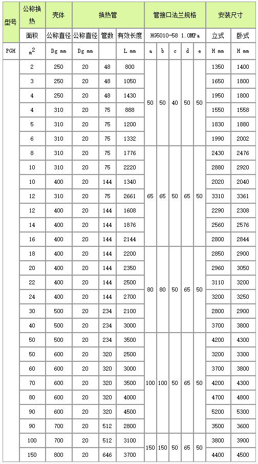 管口使用表: a.介质入口或出口;b.介质入口或出口;c.冷却水入口;d.冷却水出口;e.排净口